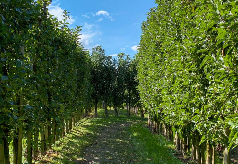 Gli alberi da frutto colonnari possono essere piantati vicini tra loro (0,5 a 1 metro di distanza tra gli alberi, 2 a 3 metri di distanza tra le file di alberi).